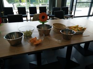 Het fruit aan de saté stokken doen kan je doen samen met de bewoners.